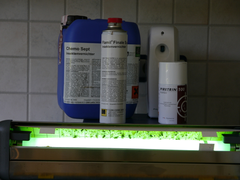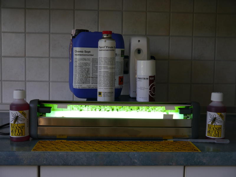 Mit Piretrin, Finale Super, Chemo Sept und dem Insect-o-cutor (lautlos) hat die Flore die Mittel zur Ruhe vor Geviech.